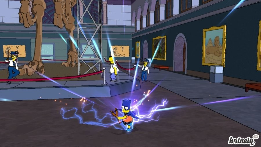 Suivez mes cheveux !Qui n'a pas savouré l'univers grandiose des Simpsons ? Cet univers fait de ces petites choses qui nous délectent l'esprit sans nous donner envie de popcorn, ce mouvement libre et satirique lancé comme une boule de bowling contre les quilles du conformisme américain. Rappelez-vous donc que cette série animée en est à sa 19ème saison et que les adaptations au format jeux vidéo ont été nombreuses et variées. Pour vous dire, la première remonte à l'époque Amiga. Toutefois aucune adaptation n'a été à la hauteur de celle-ci selon mon humble avis. Notons que c'est là une piètre performance car la franchise ayant tout pour réussir, et ce depuis bientôt vingt ans, on aurait pu attendre ce résultat beaucoup plus tôt. Il était donc plus que temps. Bravo donc à EA pour en être arrivé jusque là.