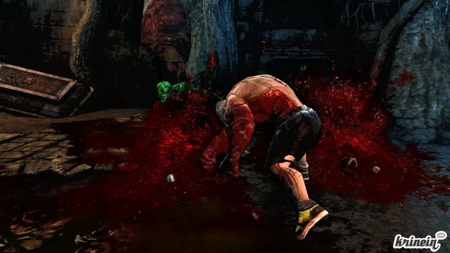 Des finishes qui claques.de déclencher différents pouvoirs (attaque de zone, rechargement de vie...), chaque utilisation consommant un tronçon. Une fois remplie au max vous pourrez passer en mode Berserk : vous serez virtuellement invincible et la puissance de toutes vos attaques sera décuplée pendant un laps de temps limité. Les combos s'obtiennent en alternant les deux boutons d'attaque. Limitée au début, la palette de coups s'enrichit au fur et à mesure de l'aventure mais reste au final plutôt limitée. On est à mille lieux d'un jeu comme Bayonetta et ses combos à gogo malgré la possibilité d'utiliser différentes armes (planche à clous, tuyau, fusil à pompe, bras arraché...). Malgré tout l'impact des tornioles distribuées par Rick est très bien rendu, une vrai brutalité se dégage de l'ensemble et on prend un malin plaisir à voir ses poings s'écraser sur les crânes des pauvres ennemis qui oseraient se mettre sur notre chemin. Cette brutalité est bien sûr renforcée par les hectolitres d'hémoglobine déversés à l'écran et la possibilité d'achever ses adversaires par des finish moves extrêmement violents. Ceux-ci vous demanderont d'effectuer de petits QTE et risque bien de tirer des grimaces de dégoût aux plus blasés des amateurs de gore. S'ils sont très efficaces dans leur exécution, ces finishes sont malheureusement trop peu variés, un ou deux par type d'adversaire, pas plus.