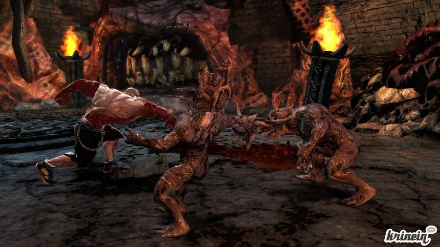 La maniabilité est classique : coups forts, coups faibles, esquive et projections, on est en terrain connu. Vous aurez également à disposition une barre de Nécro se chargeant grâce au sang de vos ennemis. Plus vous tapez et plus vous tapez fort, plus votre barre se remplira vite. Divisée en plusieurs sections, elle vous permettra
